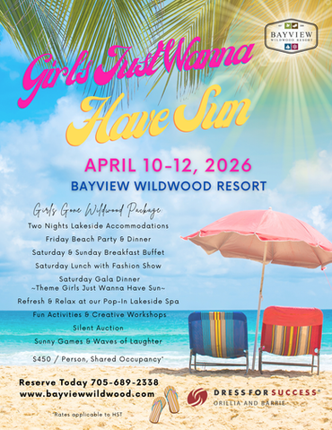 Join us for our Annual Fundraiser hosted amidst the tranquil beauty of Bayview Wildwood Resort. Girls Gone Wildwood offers a fun-filled all-inclusive weekend that provides: comfortable accommodations, delicious meals, drop-in pampering sessions, fun activities and creative workshops, and a weekend full of fun. All funds raised during this event will go directly to support Dress For Success.